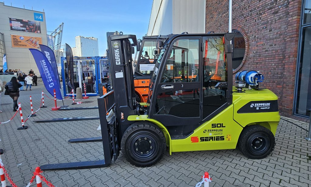 Na listopadowych targach Translogistica w Warszawie firma Zeppelin Polska przedstawiła m.in. obecny program wózków widłowych, na który składają się produkty amerykańskiej marki Clark oraz chińskich Noblelift i SOCMA; ta ostatnia jest nowością na polskim rynku. Wiele z nich ma niskoemisyjne napędy spalinowe LPG lub zeroemisyjne elektryczne, tu z kolei coraz większy udział mają baterie litowo-jonowe. Maszyny ze znaczkiem „Li-ion” stały się konkurencyjne cenowo względem korzystających z baterii kwasowych, a przewyższają je znacząco czasem pracy i są dużo tańsze (oraz prostsze) w utrzymaniu. O ile wcześniej powszechne były napięcia robocze 48 V i kilkutonowe udźwigi takich wózków, to w prezentowanym na targach modelu SOCMA HNF 120-EL o udźwigu 12 t zastosowano wysokonapięciowe (580 V) baterie o pojemności 175 kWh, nadzorowane przez układ utrzymujący optymalną temperaturę i minimalne zużycie energii, a także zabezpieczający przed przeciążeniem. Dzięki temu ich trwałość jest szacowana na 4 tys. cykli ładowania, co przekłada się na 8-10 lat eksploatacji. Maksymalna moc ładowania to 180 kW, mając taką ładowarkę w obiekcie po całozmianowej pracy w ciągu niewiele ponad 1 h można odzyskać pełną autonomię.