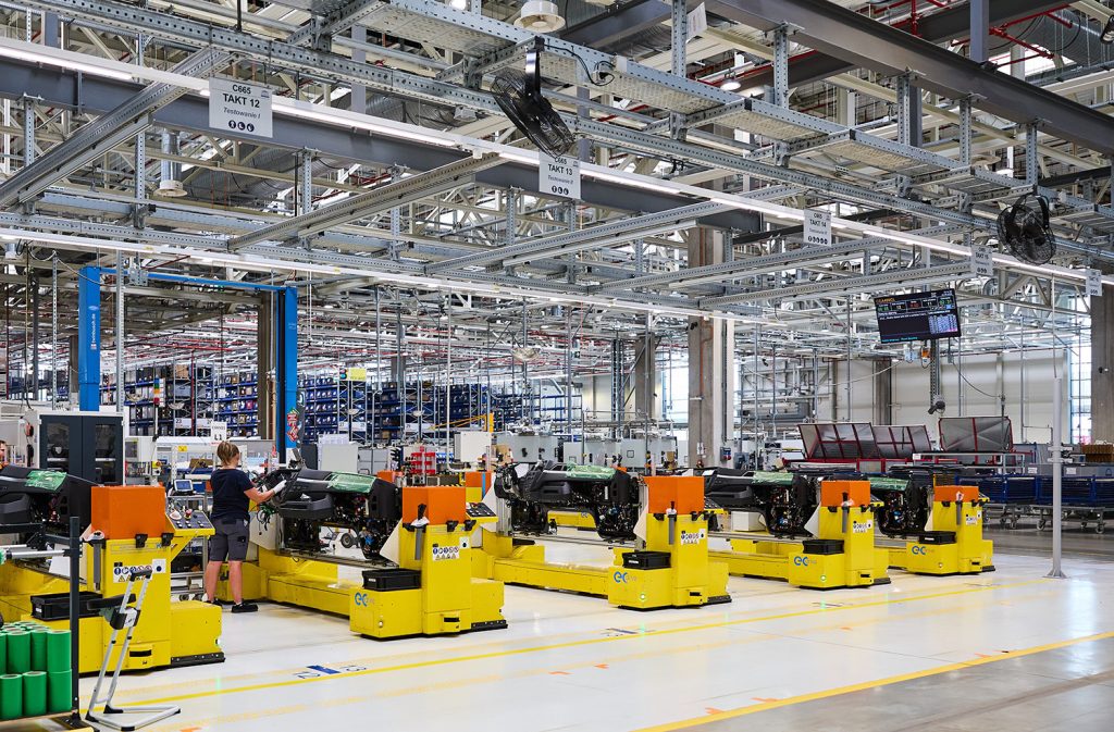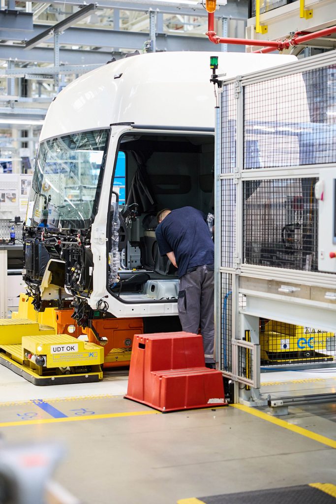 Organizacja pracy w hali H6 to prawdziwy majstersztyk. Każdy dostarczony szkielet kabiny jest na początku linii dekompletowany tracąc drzwi i dach. Są one kierowane na podmontaże, skąd wracają górnymi przenośnikami na właściwe stanowisko i w odpowiednim czasie. Zadanie wcale nie jest banalne, bo takt produkcji kabiny jest zaplanowany na 4 minuty, nie ma więc czasu na żadne przestoje. Przez halę biegną dwie równoległe linie wyposażania korpusów kabin i dachów. Skompletowany dach zostaje przeniesiony nad stanowisko, na którym robot nakłada ścieżkę klejową na całym obwodzie korpusu, po czym obie części zostają precyzyjnie zestawione w całość podróżującą dalej wzdłuż linii na samojezdnych wózkach AGV (automated guided vehicle) o regulowanej wysokości. Jednymi z największych elementów wnętrza kabiny są tablice rozdzielcze, które także mają wydzieloną strefę montażu. Są z niej dowożone na linię wspomnianymi wózkami AGV z oprzyrządowaniem umożliwiającym pozycjonowanie i instalację bez udziału operatora.