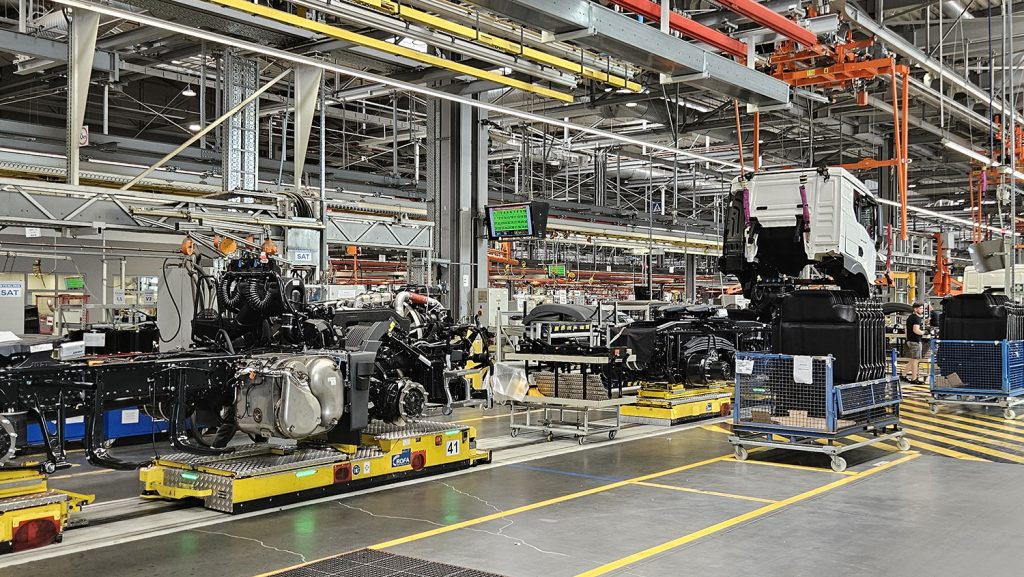 Rozbudowana hala montażu podwozi i montażu końcowego też imponuje dużą wydajnością, uzyskaną dzięki przemyślanym rozwiązaniom. Każde stanowisko jest przygotowane tak, by praca przy nim wymagała jak najmniej wysiłku fizycznego, a ryzyko pomyłek było maksymalnie zredukowane. Pomaga w tym m.in. system Werkerinfo, czyli wizualizacja czynności przekazywana pracownikom czytelnie na dużych ekranach, wskazując dokładne miejsce instalacji podzespołów na ramie. Papierową dokumentację techniczną wyeliminowano, dzięki czemu pracownicy nie muszą przerzucać stert kartek, a mają dostęp do zawsze aktualnych instrukcji, w czasie rzeczywistym. Ten nowoczesny system produkcyjny, którego inne marki zazdroszczą, jest wspólnym osiągnięciem polskich i niemieckich technologów. Nie dziwi fakt, że ciężarówka nr 200 000 powstała tu już w październiku 2022 r., a 300-tysięczna – dwa lata później!